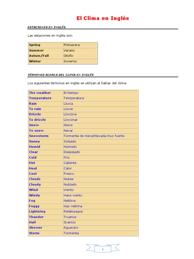 Ver más ideas sobre tiempo preescolar, el clima en ingles, inglés para niños. The weather forecast from monday to thursday is as follows: Ahora que ya cuentas con una base sobre el clima en inglés, es hora de aprender a preguntar por él. El clima humid nos hace transpirar más. Traductor gratuito online en elmundo.es.